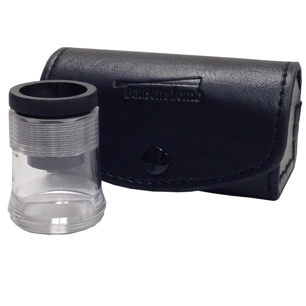 Optical precision comes from bonding together a double convex element and two concave elements of different types of glass. The transparent body allows illumination to fall on magnified area; body is threaded so you can focus the lens. Lens slides are coated black to block glare. Optional measuring scales (sold separately) screw onto the bottom of the lens.