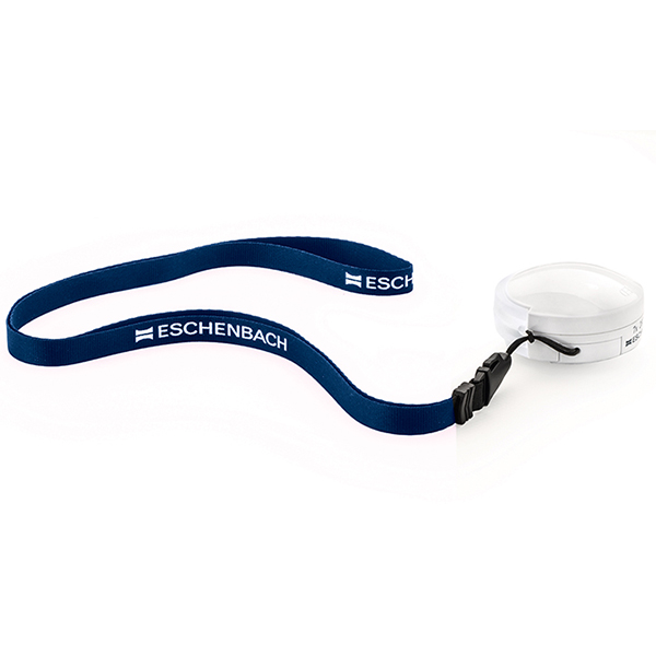 An 18” lanyard is included with each Mobilent LED magnifier which can be threaded through the loop hole in the magnifier case and worn around the neck. The quick-release clasp on the lanyard allows the magnifier to be easily unhooked when needed.