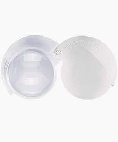 The Mobilent LED is a folding pocket magnifier that offers high magnification in a compact size with added illumination. Its built-in case is designed to provide complete protection for the lens when not in use. The LED light can be turned on when needed by pressing the button on the bottom of the magnifier case, thereby providing extra light for reading indoors or in dimly lit environments.