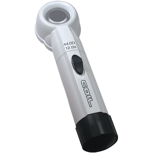 12.1x 44.0D. Maintenance free sealed unit LED light source. Extended battery life/easy battery change. Manufactured for safe, reliable, long lasting use. Aspheric lenses designed to be free of significant distortion, abrasion resistant coating, index matched to improve light transmission.