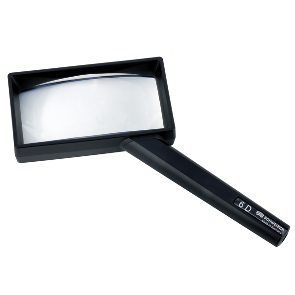 The Schweizer 2X / 6D Sempral Rectangular Hand held Magnifier is a lightweight and durable visual aid, with a sleek and elegant design. The hand magnifier features a high quality aspheric lens to provide a clear, quality image and a round grip that includes an integrated lanyard holder for ease-of-use.