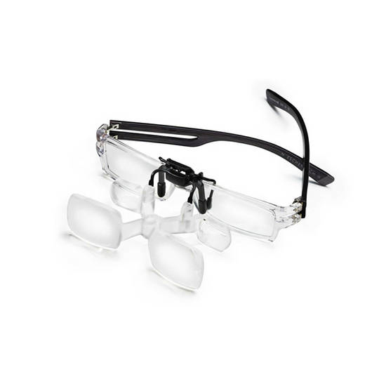 The MaxDetail Clip is a lightweight binocular magnifier that clips onto your eyeglasses to give you 2X magnification at a very comfortable 15” focal distance. The relatively high magnification at such a work-friendly distance is achieved through the use of the MaxDetail Clip double lens Galilean optics. Single lens clip-ons and headband magnifiers are limited by the laws of optics to fixed ratios of magnifications to distance, sacrificing increased magnification to shorter working distances. With the MaxDetail Clip, you get a lightweight, less obtrusive product that delivers a wide 3-3/8” field of view at a respectable 2X magnification while keeping your focus at a comfortable to work with 15” distance.