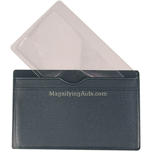 A vinyl case, 3.5 x 2.25 inches, containing a signature guide and a Fresnel magnifier. As easy and useful to carry as a credit card. Weight 0.3 oz.