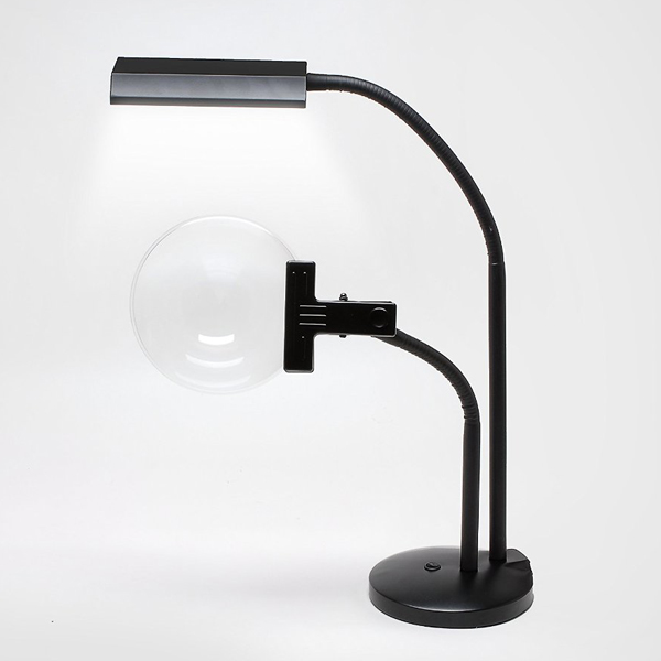 * Flexible arms for the led light and lens