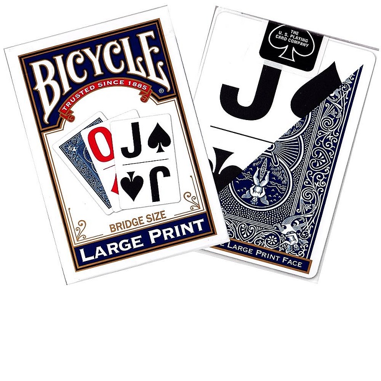 Bicycle Large Print Bridge Size Playing Cards are designed to be more visible, making card playing easier for everyone. These larger print, colorful cards are also great for teaching younger players card games.