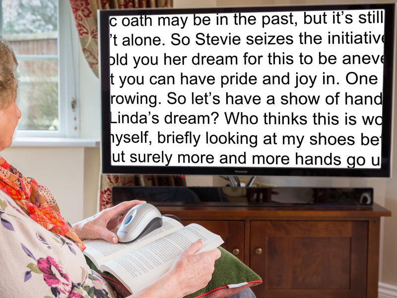 A Magnifier To Read Text On Your Television We now have the option to use on your television. The ColorMouse-HDMI. By contrast the ColorMouse displays all text and images in full color.