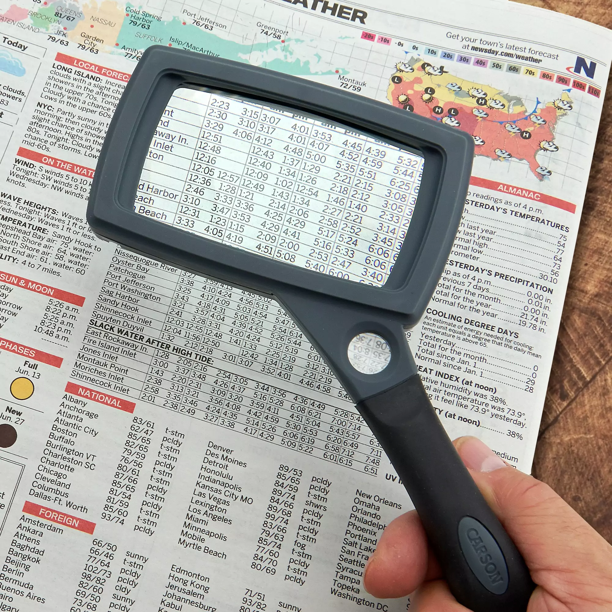 Our hand and stand magnifier offers the versatility of handheld or handsfree use. The 2x glass lens with built-in 11.5x spot magnifier increases the SG-16’s range of use while providing maximum durability. The ergonomic SureGrip™ handle adds comfort while in handheld use or easily transition to hands free use by extending the metal drop-down legs (stows easily in handle during handheld use). The rectangular shape of this magnifier is designed specifically with reading in mind. The SureGrip™ rubberized handle is mounted at an angle for additional comfort while providing a more natural viewing position. The variable range of use of the SG-16 while in the stand position is great for threading needles, removing splinters or any time when two hands are needed. This magnifier is perfect for those with limited hand strength who also want the durability of a glass lens. Includes a soft zippered case for protection between uses.