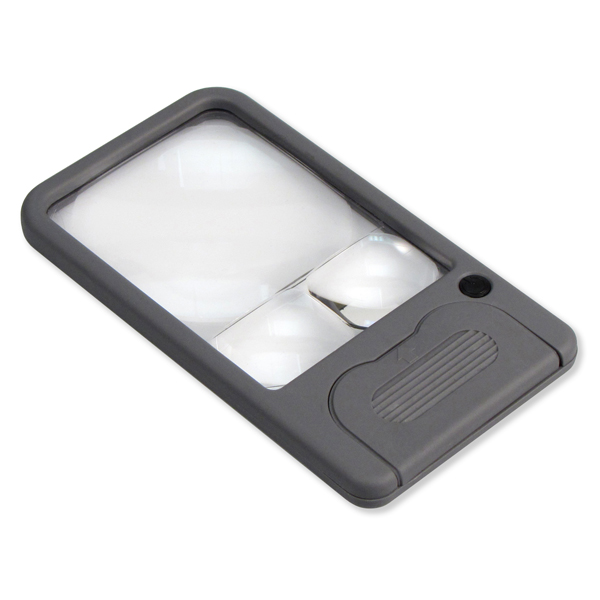 Carson Optical is a multi-power LED lighted Magnifier. This HandHeld Pocket Magnifier™ has three magnifying powers: 6x, 5x and 2.5x. It features a crystal-clear acrylic lens. It is an ideal low vision aide. The Pocket Magnifier™ is also perfect for reading fine print. It is so compact that it can easily fit in a pocket or purse.