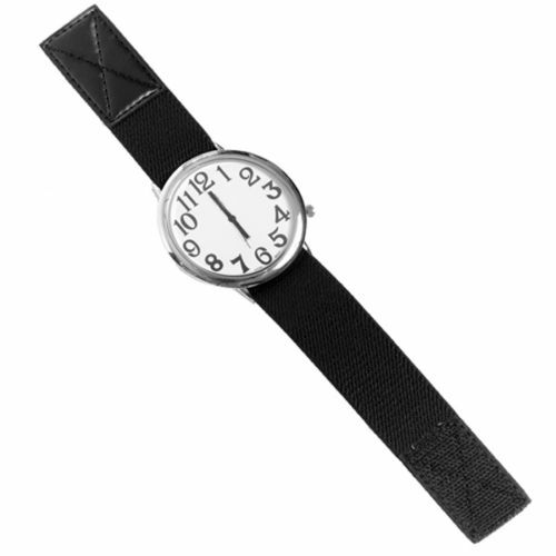 This extra large watch has a 1.6″ wide face within a 2″ case, providing extra large visibility and clarity. Bold black hands are featured on a white face with bold black numbers so that you can read the time with ease.
