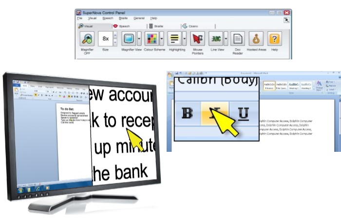 Enlarges documents and apps on screen up to 60-times. 8 magnifier views keep documents and apps in perspective. You can show magnification full screen, split screen and fixed window or as a movable magnifying glass. The rest of the screen shows the original unmagnified application to keep context clear. The magnifier view can be resized and repositioned so you can quickly and easily control where on screen the magnifier appears.