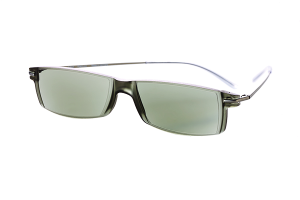 New progressive reading glasses with tinted lenses allows presbyopes to use just one pair of readers while outdoors for all near point needs! The progressive lens increases in power by a full diopter from the top of the lens to the bottom of the lens. The MiniFrame2 Sun is perfect for reading outdoors because the lenses are tinted gray, giving the user just the right amount of shaded light – with a light transmission level of 24.4%. They also block 100% UVA and UVB light.