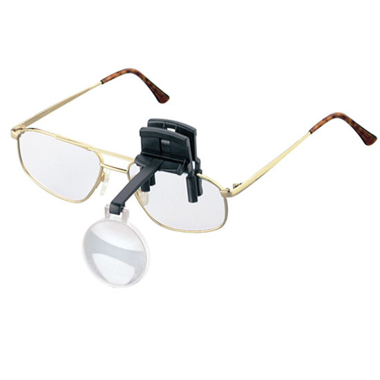 Clip-on magnifiers are designed to provide spectacle wearers with hands-free magnification. Fits Over Prescription Eyewear, Replacement Lens are available separately (1645-3), Will Fit Glasses up to 15 mm Thick, Protective Rubber Tips on Clamp. Lens is set 2 inches from eye, allowing for a more comfortable working distance. When not needed, the lens can be flipped up and out of the way. Lenses are interchangeable for different magnification needs