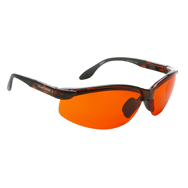 All SolarComfort® filters block 100% of UVA/UVB rays and are made with bend-to-fit temples for a custom fit. Frames are made of lightweight nylon 66. The tinted lenses block visible light in the following wavelengths: gray and plum lenses (400nm); yellow (450nm); amber (511nm); orange (521nm).