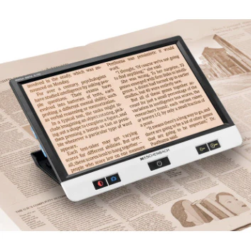 The device’s unique Dynamic Line Scrolling (DLS) feature allows the user to scroll both horizontally and vertically when on the higher magnification levels without having to move the device. Its FHD camera actually sees more than what’s shown on the screen, making reading a book or magazine easier than ever. Images can be captured and stored on a removable 8GB SD card.