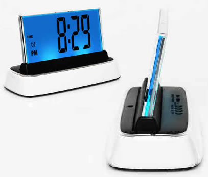 An amazing, modern styled talking clock, calendar, thermometer, nightlight etc. that is totally voice controlled. When AC power is plugged in you may talk to the moshi, say hello moshi and it will respond. When only running on batteries you have to wake it up by touching it once and then control it totally by voice.