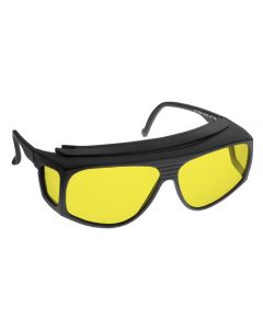 The SpectraShield frame is a fitover style frame with a more contemporary design. The glasses have side lenses to let in additional light while managing those effects. There’s a removable top bar that can either be used for a closer and tighter fit or can be removed for a more open fit. NoIR filters can help people minimize eye discomfort and maximize visual resolution. NoIR SpectraShield provide 100% Ultraviolet (UV) protection and are Doctor recommended for Low Vision and general purpose wear. This yellow color filter is often recommended for people who have glaucoma or pre-operative cataracts because of its glare control and general comfort.