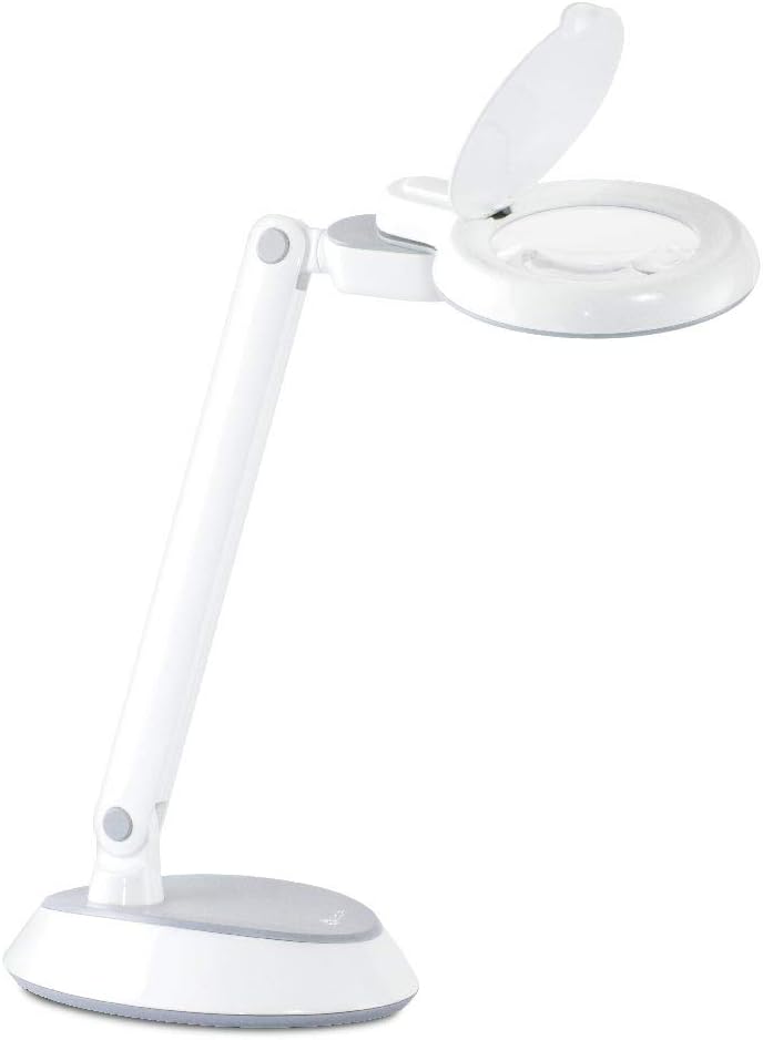 The 3-inch, 1.75x optical-grade magnifier helps you see intricate details with ease. There’s a flip cover on the magnifier to protect the lens when not in use and the lamp easily folds for compact storage.With OttLite you can see details clearly and reduce glare.