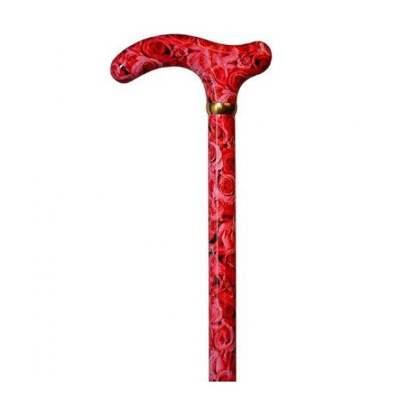 Elegant pink rose flower design with high gloss finish with matching derby handle and brass band mounted on a 36″ hardwood shaft.
