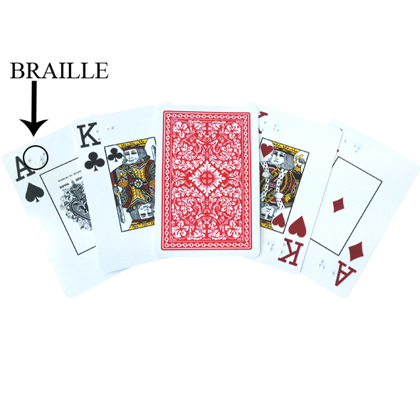 Braille markings for both the face value and suit for each card mean they are easy to identify by touch. Large symbols also make these cards easier to read than standard cards.